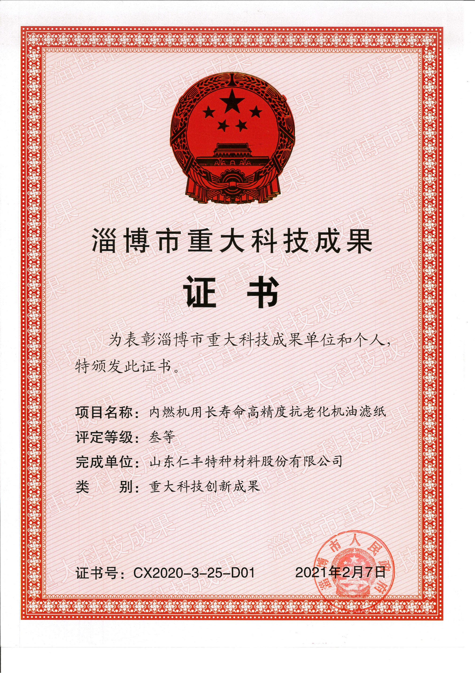 公司注重技術(shù)研發(fā),堅(jiān)持創(chuàng)新引領(lǐng)。擁有70余項(xiàng)發(fā)明專利和實(shí)用新型專利,榮獲淄博市重大科技成果、省級(jí)科技進(jìn)步獎(jiǎng),參與了空氣過濾材料國家標(biāo)準(zhǔn)的制定,公司的“空氣過濾紙及紙板”項(xiàng)目榮獲山東省制造業(yè)單項(xiàng)冠軍企業(yè)稱號(hào)。成立省級(jí)企業(yè)技術(shù)中心,并在上海設(shè)立研發(fā)中心,聘請(qǐng)國內(nèi)外專家學(xué)者,與各大院校、機(jī)構(gòu)產(chǎn)學(xué)研合作,多次承擔(dān)淄博市高新技術(shù)創(chuàng)新“雙十”計(jì)劃項(xiàng)目等科技項(xiàng)目。