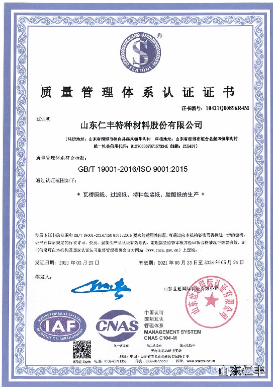 山東仁豐特種材料股份有限公司成立于2006年,坐落在山東省桓臺(tái)縣起鳳工業(yè)項(xiàng)目集中區(qū),注冊(cè)資本1億元。公司主要面向國內(nèi)外市場(chǎng)從事包裝用紙、特種紙、紙基和類紙?zhí)胤N材料的研發(fā)、生產(chǎn)和銷售。公司榮獲“淄博市創(chuàng)新型高成長企業(yè) 50 強(qiáng)”、“ 淄博市工業(yè)企業(yè) 50 強(qiáng)”、 “淄博市瞪羚企業(yè)” 、“淄博市綜合百強(qiáng)企業(yè)”、“淄博市工業(yè)百強(qiáng)企業(yè)”、“山東省專精特新中小企業(yè)”等榮譽(yù)稱號(hào)。